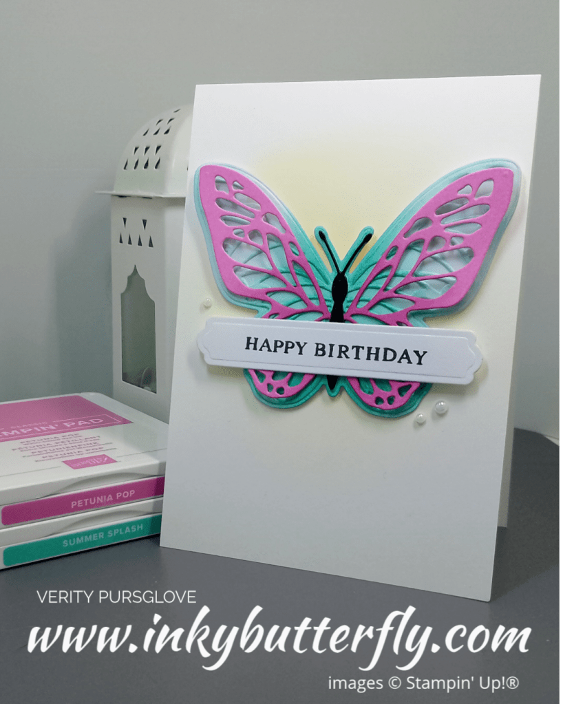Next it’s Verity Pursglove of http://www.inkybutterfly.com – Verity has created this lovely birthday card using the Beautiful Butterflies Bundle with a hybrid embossing folder.