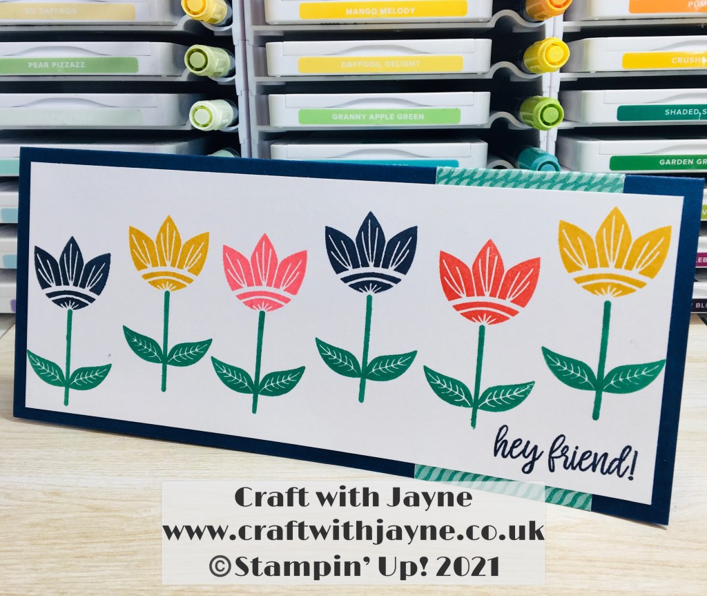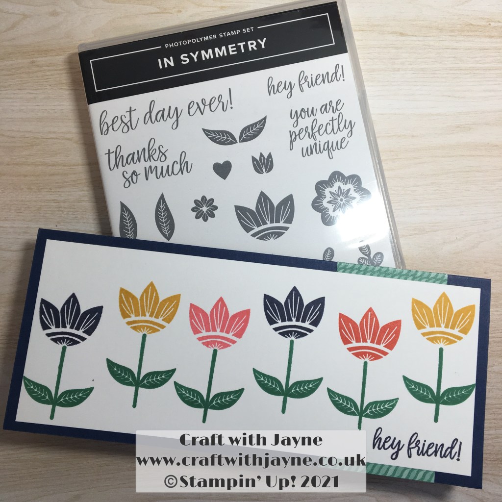Hi all, this is a quick ‘micro blog’ showcasing a colourful Slimline Friend Card using the ‘In Symmetry’ Stamp set & ‘Sweet Symmetry’ Designer Series Paper (DSP).