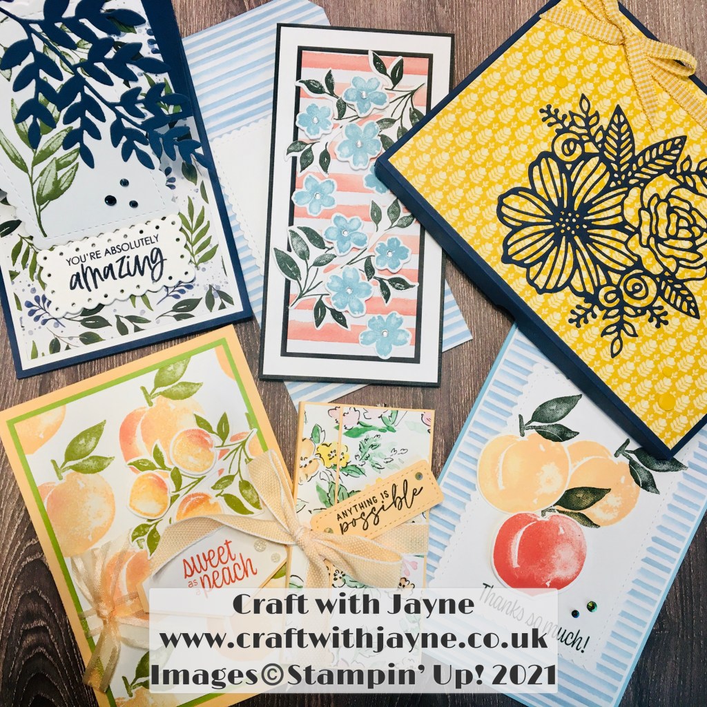 Mini Slimline card and envelope from Janice @ ‘Jazzle Dazzle Crafts’: https://www.stampinup.uk/products/sweet-as-a-peach-bundle-(english)?demoid=5049163