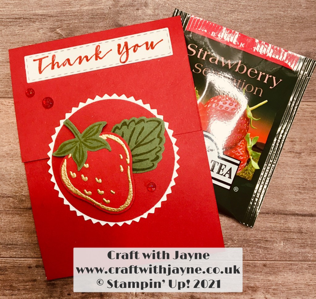 Sentiment stamped using the Sweet Strawberry Stampset and punch Bundle: https://www.stampinup.uk/products/sweet-strawberry-bundle-english?demoid=5049163