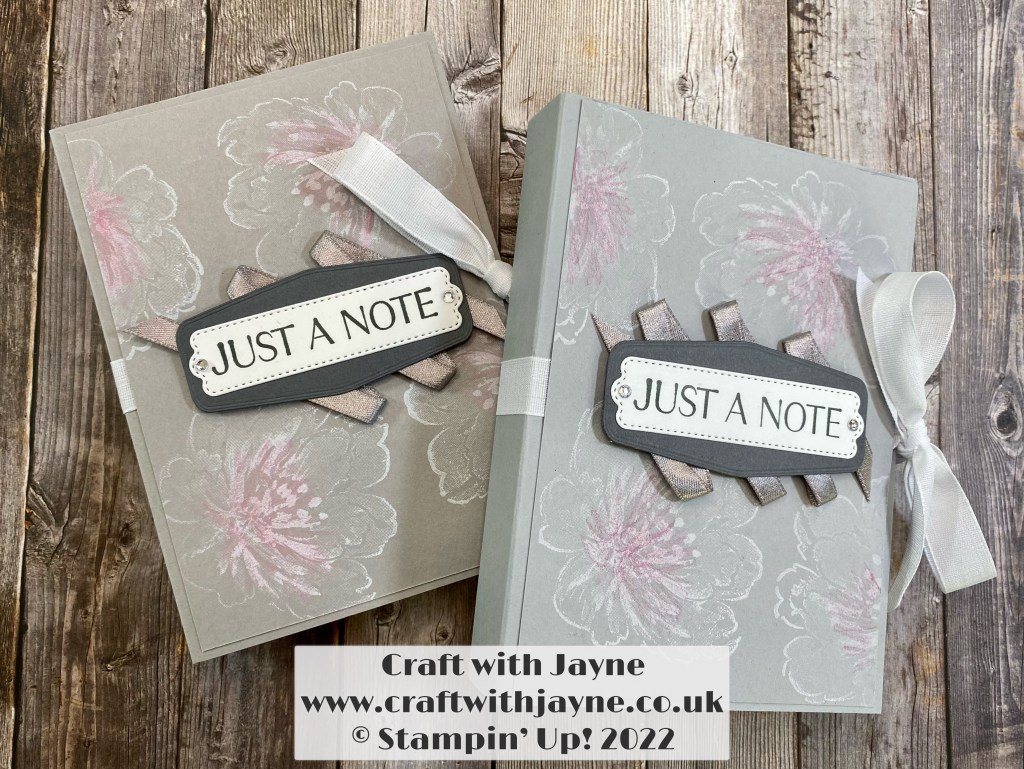 Project measurements, Instructions & product links: Inner Box to hold notecards – cardstock measuring 5 1/4″ x 9 1/2″ (13cm x 24cm), score the Long Side at 1/2″, 1 1/4″, 5″ & 5 3/4″ ( 1cm, 3cm, 12.5cm & 14.5cm) and the Short side 3/4″ (2cm), then burnish, cut, mitre and glue to assemble. The outer ‘Book Style’ cardstock layer measuring 5 1/4″ x 8 5/8″ (13cm x 22cm), score the Long Side 3 7/8″ & 4 3/4″ (10cm & 12cm), burnish and attach inner Box to hold note cards. Three Mat Layers 3 5/8″ x 5 1/8″ (9cm x 12cm), decorate, glue & decorate / embellish to finish.