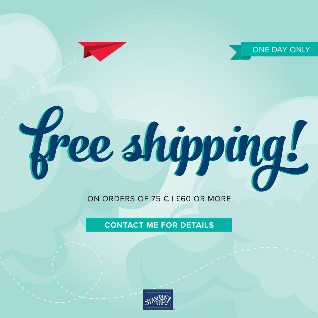 Its a great time for you to stock up and save on your favourite Stampin’ Up! products! On 21 June only, there is FREE shipping on orders reaching 75 € | £60 or more. This incredible deal lasts for 24 hours only and starts on 20/06/22 @ 11pm to 21.06.22 @ 10.59pm!