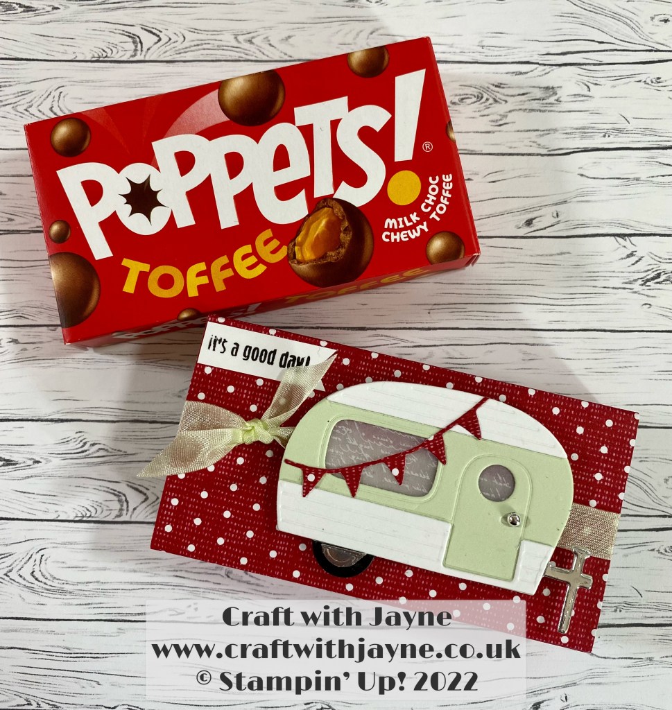 Project Instructions and Product Links: DSP measuring 6″ x 3 3/4″ (15cm x 9.5cm), score the long side at 2″, 2 3/4″, 4 3/4″ & 5 1/2″ (5cm, 7cm, 12cm & 14cm). Burnish and glue wrap to fit the Treats, then decorate / embellish to finish.