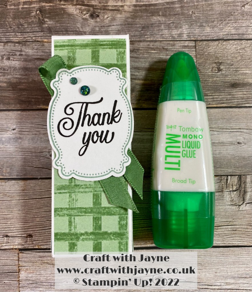 Hi all, I have created this simple gift box for a Towbow Multi Purpose Liquid Glue using the excellent Gingham Cottage DSP. If you would like to purchase any of the Stampin Up! products shown I have created links to my online shop for the products throughout the text for you. To compliment this blog there is also a short YouTube video, click the link: https://youtu.be/eMoI3yR4fJA