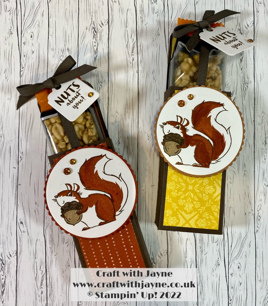 Hi all, today I have created these autumn themed ‘Slider Treat Boxes’ using the fabulous ‘Nuts about Squirrels’ Stampset. If you would like to purchase any of the Stampin Up! products shown I have created links to my online shop for the products throughout the text for you. To compliment this blog there is also a short YouTube video, click the link: https://youtu.be/oK0DMFU5Bkk