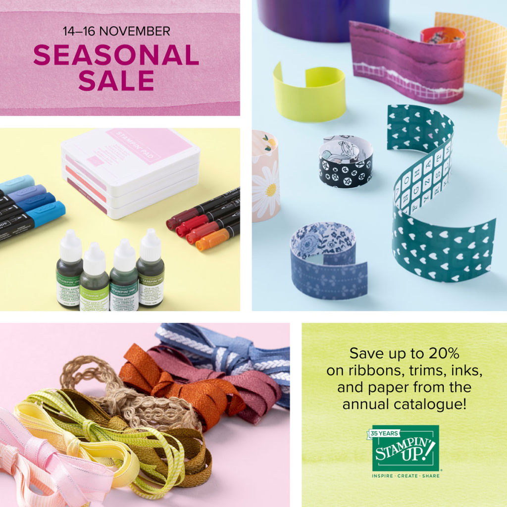 - 20% off papers, including cardstock, specialty paper, and Designer Series Paper.