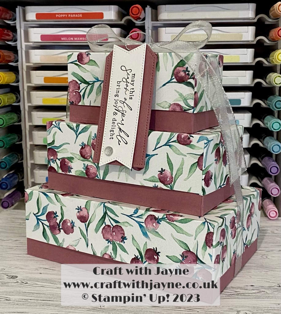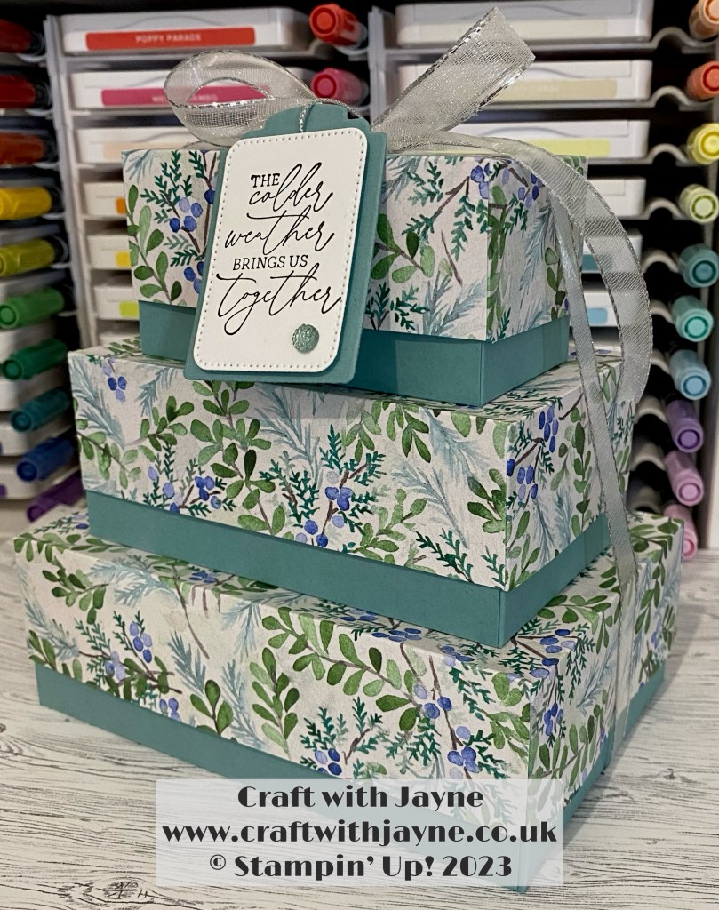 1 thought on “Christmas Gift Boxes Stack | Winter Meadow | Stamp Around UK | Craft with Jayne | Stampin Up!”