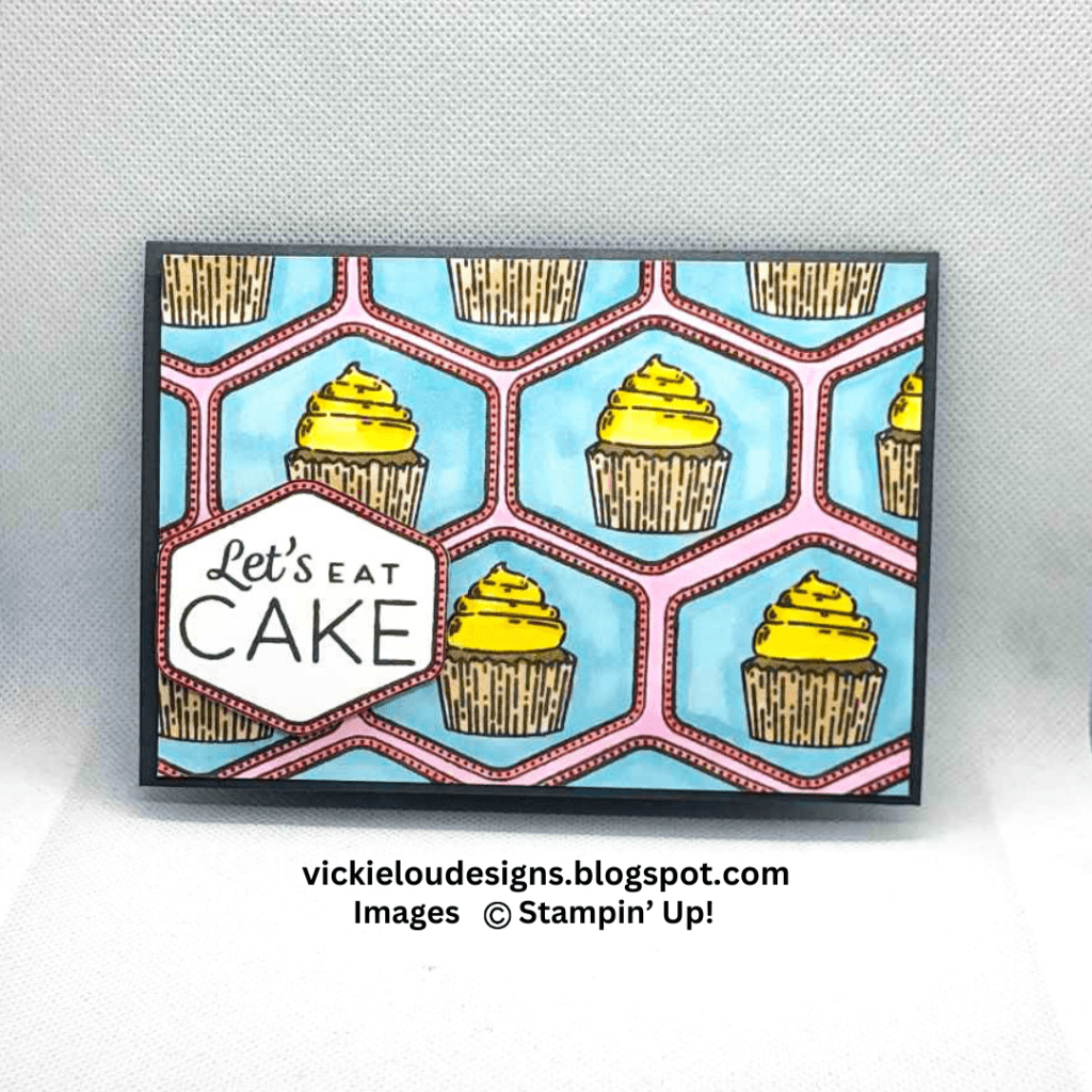 Finally its Victoria Littlewood of http://www.vickieloudesigns.blogspot.com Vickie has created this delightful card titled ‘Let’s Eat Cake’ using stampin blends and the Heartfelt Hexagon Bundle!