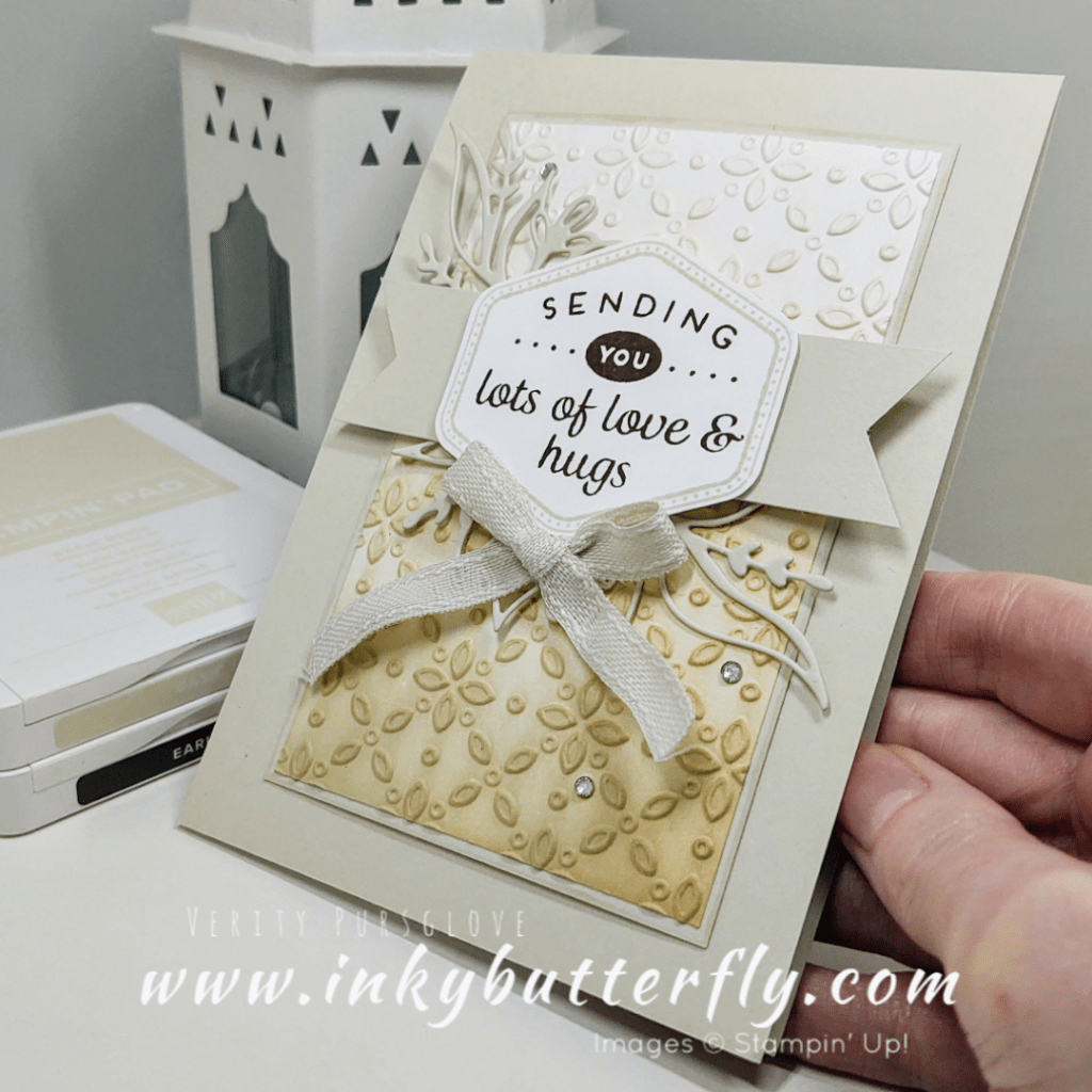 Next is Verity Pursglove of http://www.inkybutterfly.com – Verity has created a fabulous card using the Heartfelt Hexagon Stamp set and Punch, she has also showcased a colour that is joining the core range ‘Basic Beige’, in the NEW Annual Catalogue (available May 2024).