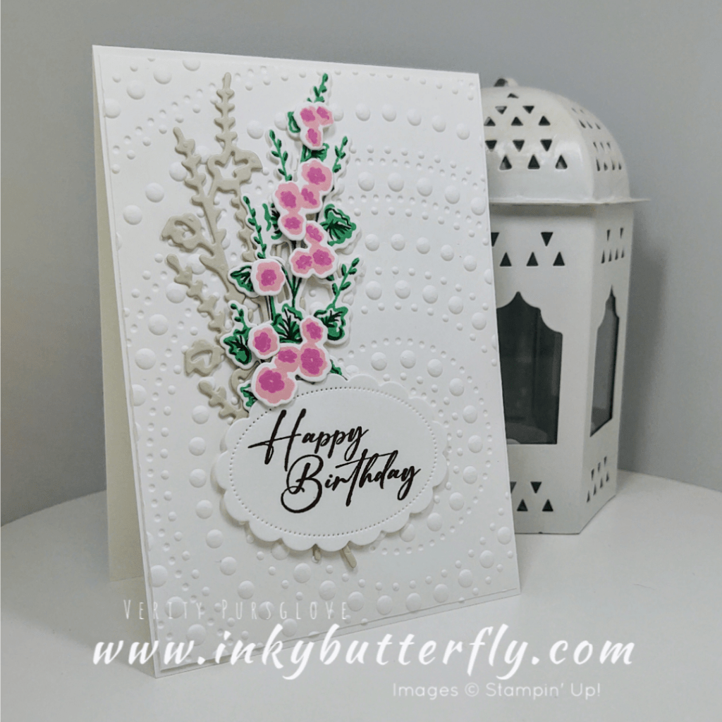 Next is Verity Pursglove of http://www.inkybutterfly.com – Verity has created this beautiful floral card using the ‘Flowers of Beauty’ and ‘Unbounded Love’ Bundles, used with a 3D embossing folder for the background, all from the NEW Annual Catalogue available May 2024.