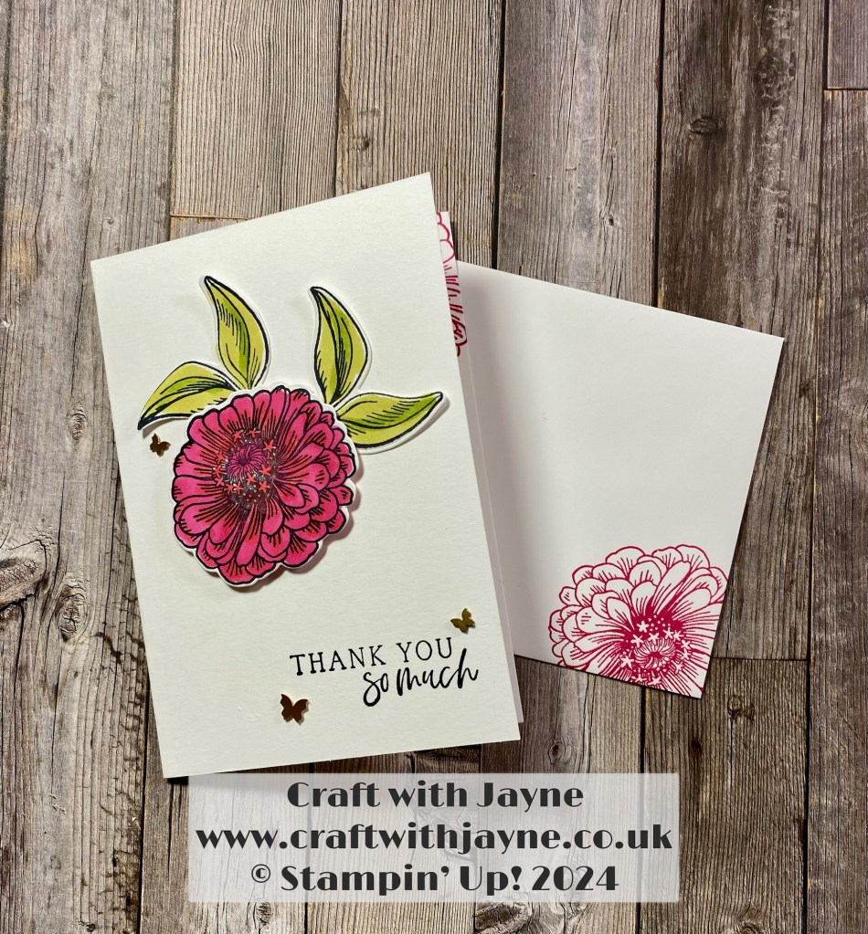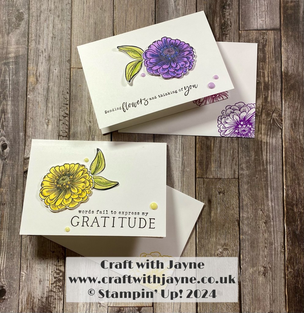 Hi all, today I’m really excited to be taking part in the Monthly Project Share Blog hop! For this month’s project we have a ‘Colouring’ theme and I have used the notecards & envelopes to make simple thank you cards with the Online Exclusive ‘Simply Zinnia’ Bundle and my Stampin’ Blends.