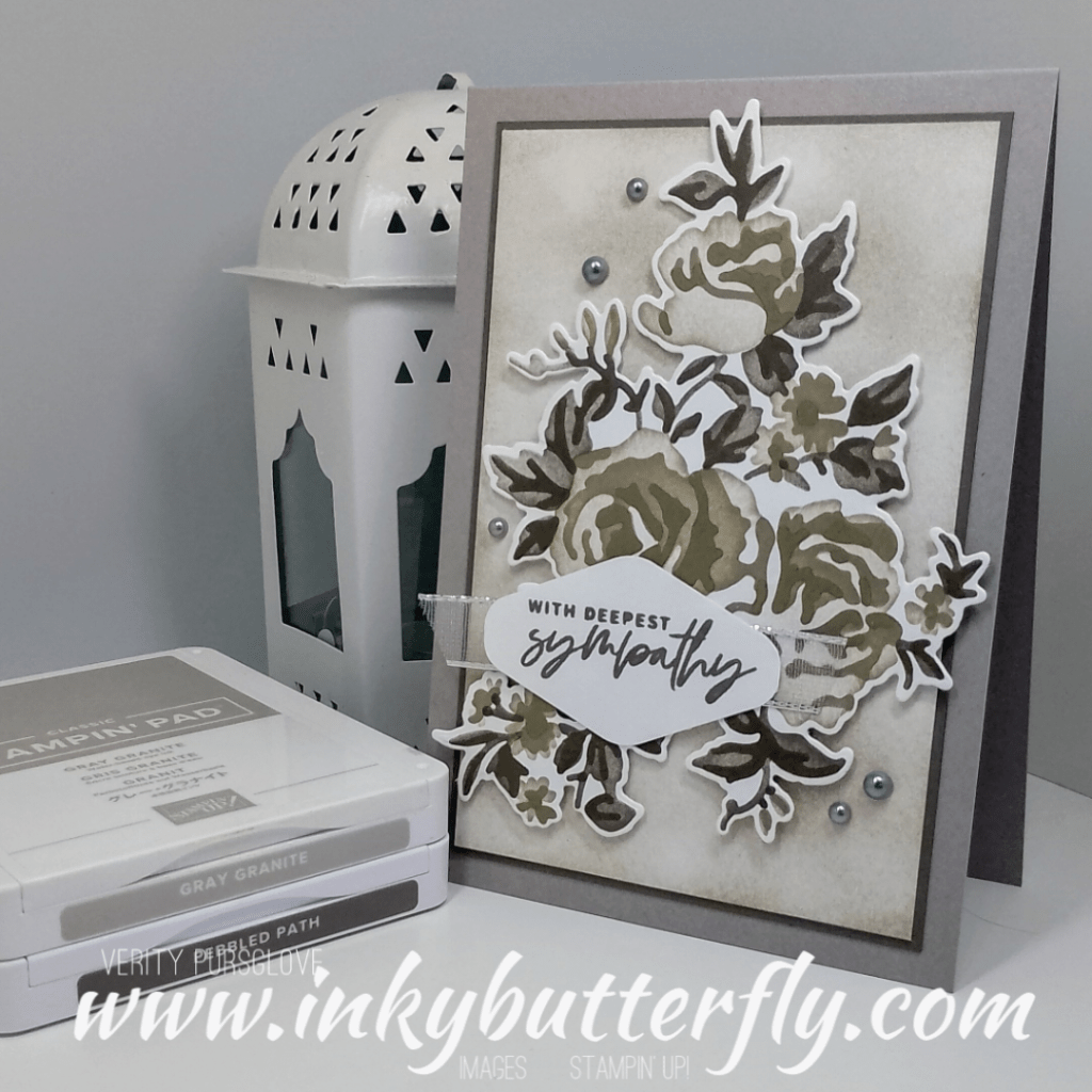 First is Verity Pursglove of http://www.inkybutterfly.com – Verity has created this serene sympathy card using a combination of grey colours and the Layers of Beauty Bundle!