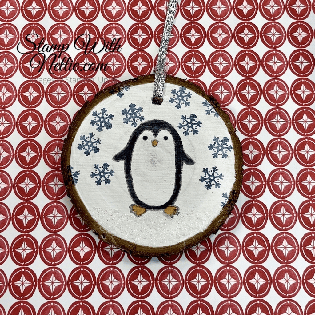 Finally it’s Heather Forgan of http://www.stampwithnellie.com – Heather has created a delightful Christmas tree decorations using wood slices and the Snowy Wonder Stamp Set!