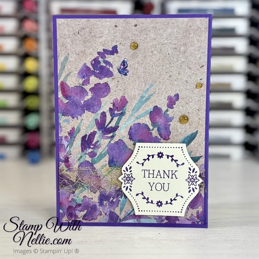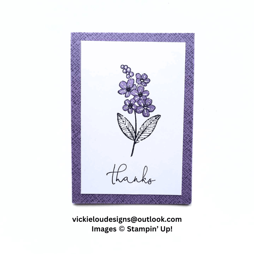 First it’s Heather Forgan of http://www.stampwithnellie.com – Heather has created beautiful Thank You Card showcasing the lovely Perennial Lavender DSP!