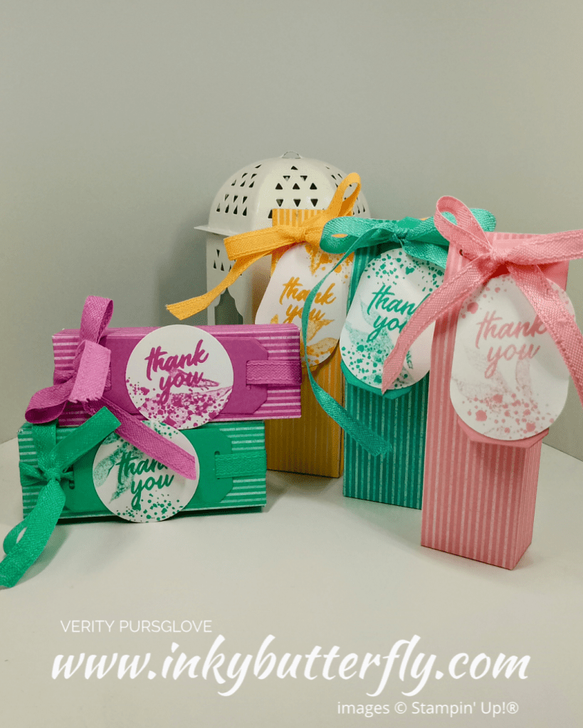 Next it’s Verity Pursglove of http://www.inkybutterfly.com – Verity has created these lovely mini giftbags and giftboxes using 6″x6″ designer series Paper.