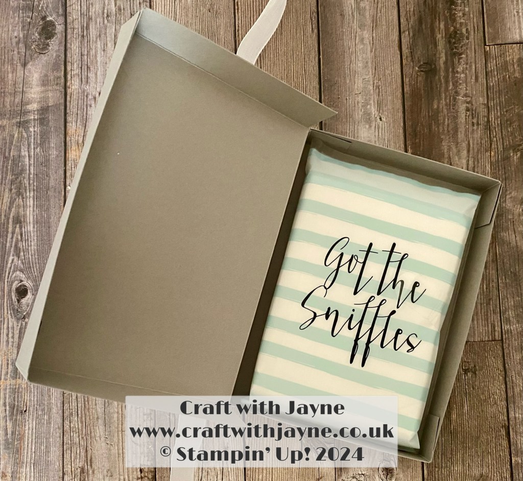 Hi all, today I’m delighted to be taking part in the Monthly Project Share Blog hop! For this month’s project we have a ‘Case a Project Share Demo’ theme and I have created this lovely ‘Feel Better Soon’ gift box for tissues using the Nest of Winter DSP. I was inspired by the lovely Vickie of ‘Vickie Lou Designs’ who used this DSP with a card sketch to create a beautiful Thank you Card!