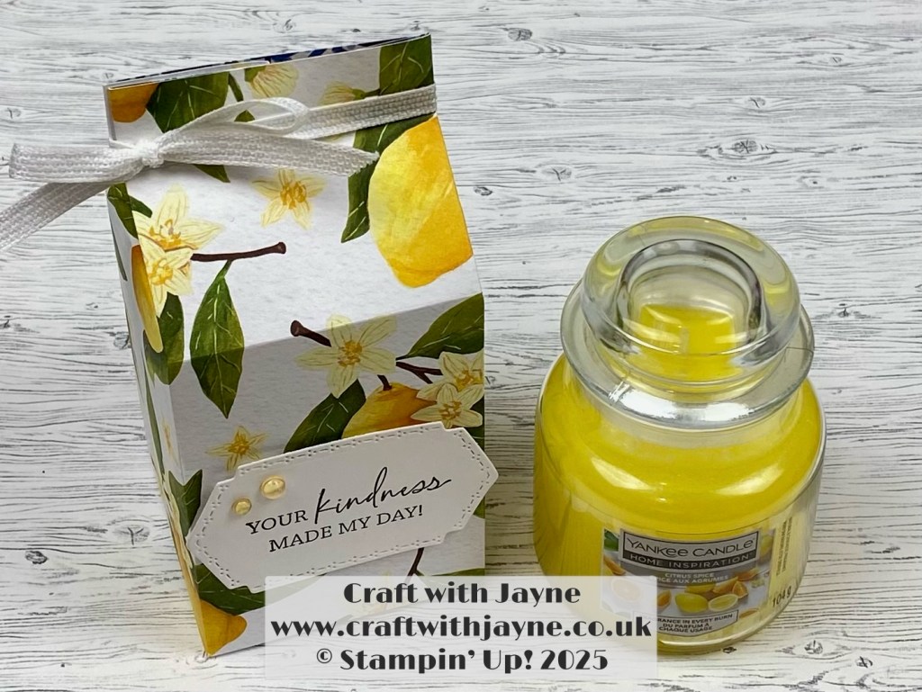 Hi all, today I have created these delightful Milk Carton Gift Boxes to hold a small Yankee Candle using the Mediterranean Blooms DSP. If you would like to purchase any of the Stampin Up! products shown I have created links to my online shop for the products throughout the text for you. To compliment this blog there is also a short YouTube video, click the link: https://youtu.be/HGIXrSk7MDs